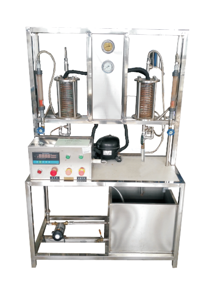 1、本裝置適用于制冷、空氣調(diào)節(jié)、食品冷凍、家電等專業(yè)的教學(xué)。系統(tǒng)由壓縮機(jī)、蒸發(fā)器、冷凝器組成,蒸發(fā)器采用透明耐壓玻璃作殼體,可直接觀察到制冷劑的蒸發(fā)和冷凝現(xiàn)象,并通過(guò)進(jìn)出水溫的變化可觀測(cè)制冷效果。