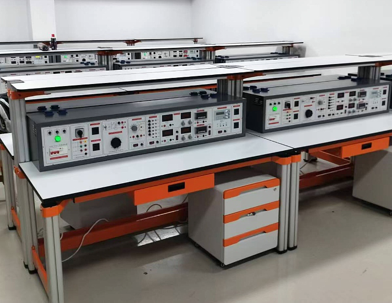 本實訓(xùn)臺主要由實訓(xùn)主機箱、儀器架、電源控制箱、獨立實訓(xùn)電路模塊、實訓(xùn)桌(含磁吸式實訓(xùn)基座)、儲存柜、學(xué)生凳等組成。