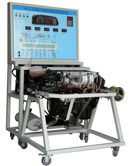 拆裝翻轉(zhuǎn)臺(tái)架由電控汽油發(fā)動(dòng)機(jī)總成和可做360度翻轉(zhuǎn)的發(fā)動(dòng)機(jī)拆裝架組成,運(yùn)行檢測(cè)控制臺(tái)由控制面板、發(fā)動(dòng)機(jī)電控單元、冷卻系統(tǒng)、供油系統(tǒng)、蓄電池等組成;