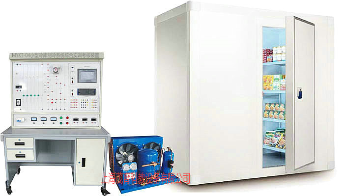 實訓裝置主要由控制臺、風冷制冷機組、拼裝式冷庫、主機實訓模塊、溫度和傳感器采集模塊及實訓模塊等組成