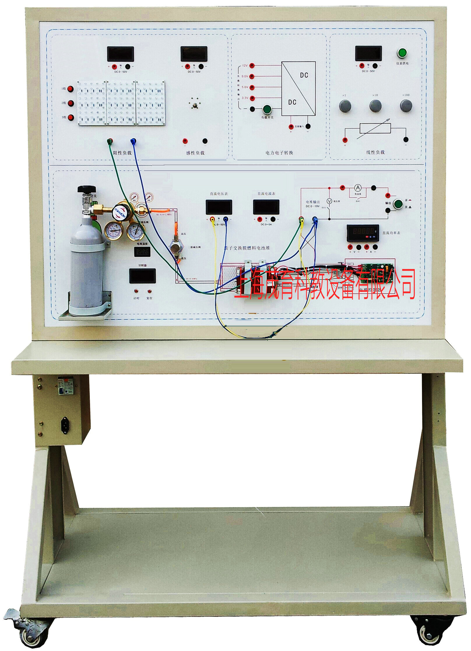 示教板采用點火開關(guān)、燃料電池(氫氣)、直流電動機、發(fā)光二極管組件、制動開關(guān)等。12V開關(guān)電源、大型彩色噴繪電路原理圖、控制面板、可移動臺架、使用說明書及實訓(xùn)指導(dǎo)書等。