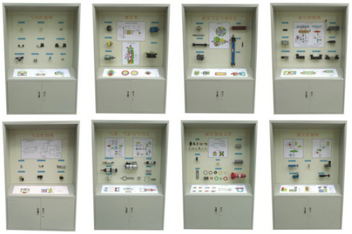 該實訓室能讓學生很好地理解和掌握液壓與氣動元件結構、形狀、作用和工作原理方面的知識,掌握常用的液壓回路作用、工作原理及安裝調(diào)試方法。還可以完成壓力控制回路實訓、速度調(diào)節(jié)回路實訓、方向控制回路實訓、雙缸工作控制回路實訓、各種液壓元件的性能實訓、PLC控制的液壓氣動基本回路實訓等三大類18種液壓氣動實訓項目。